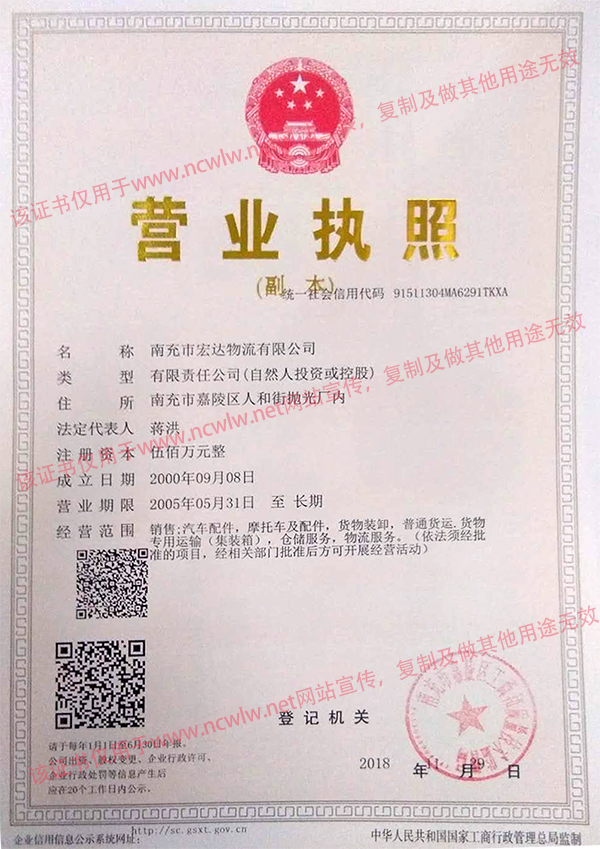 南充物流網(wǎng)(m.energypricequote.com) 南充市宏達(dá)物流有限公司營業(yè)執(zhí)照