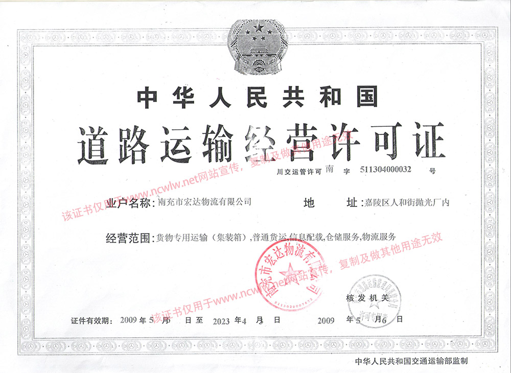南充物流網(wǎng)(m.energypricequote.com) 南充市宏達(dá)物流有限公司道路運輸經(jīng)營許可證